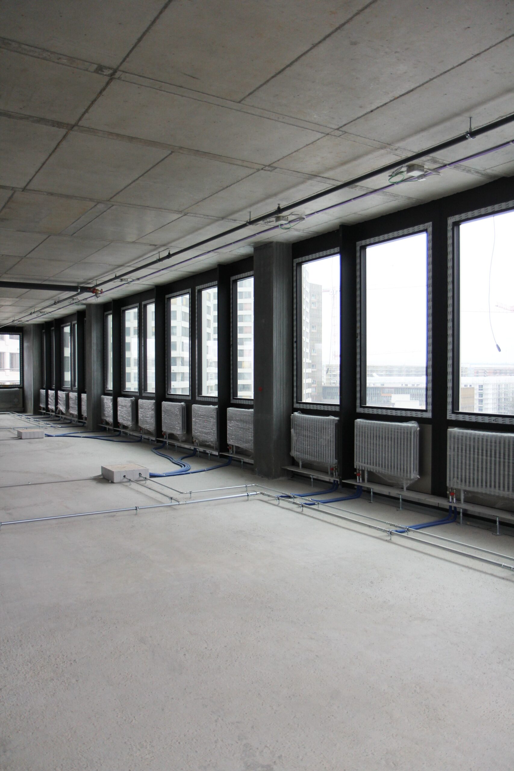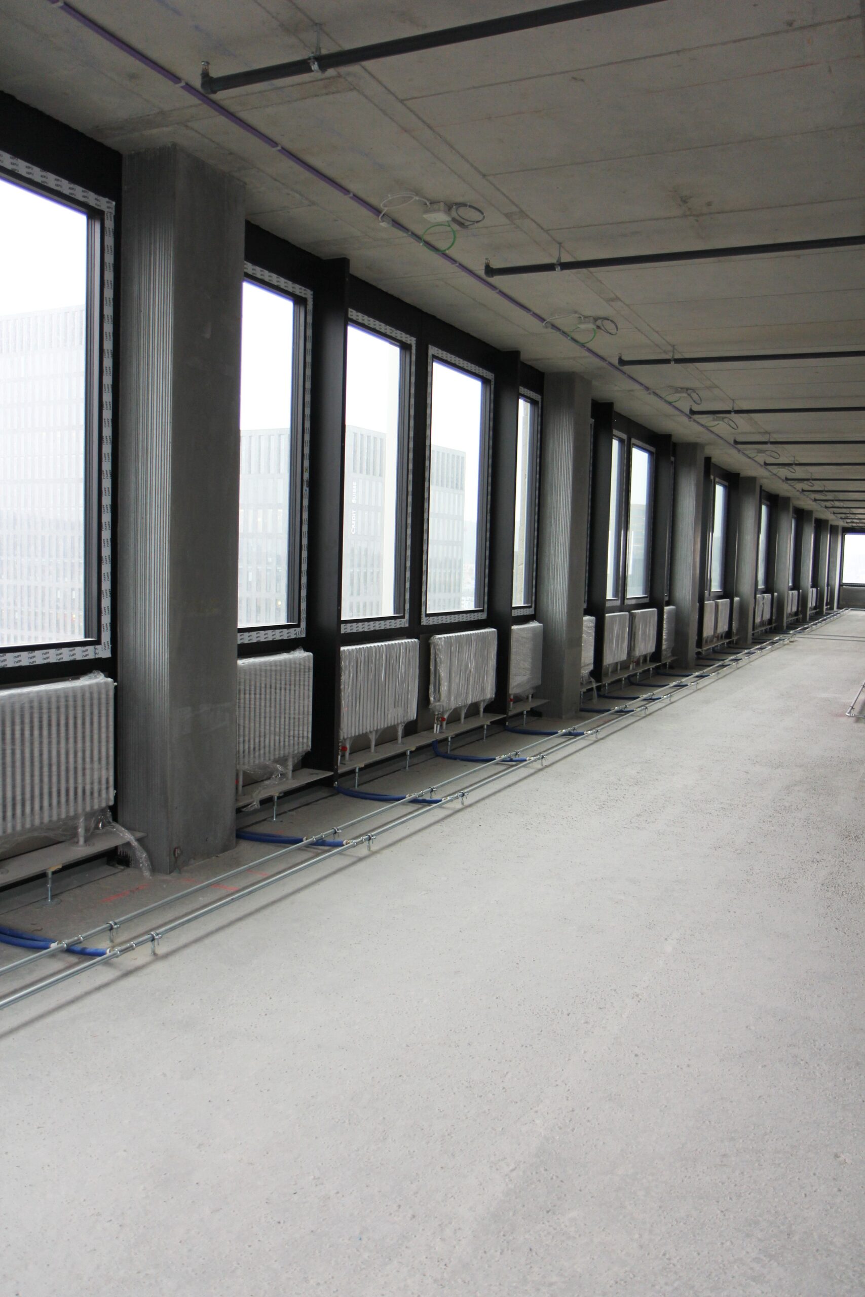 Metern und 22000m2 Büro- und Gewerbefläche handelt es sich um das höchste Gebäude in der Überbauung Wolkenwerk. Der Grundausbau Heizung umfasst 1661 Heizkörper und 474 Laufmeter Boden- konvektoren auf 21Geschosse. Die über die Anbindung an des Fernwärmenetz der ERZ mit Wärme versorgt werden. Mit über 18000 Laufmeter verbauten Stahlrohren werden die Heizkörper und Bodenkonvektoren mit Wärme und die Geschosse mit Kälte versorgt. Für die Erzeugung der Kälte wurden zwei Turbokaltwassersätzte der CTA mit einer Gesamtkälteleistung von 1552kW und zwei hybride Trockenkühler der Cabero mit je 800kW verbaut. Der Messeturm Zürich wird nach den anspruchsvollen Standards von LEED Platinum erbaut.