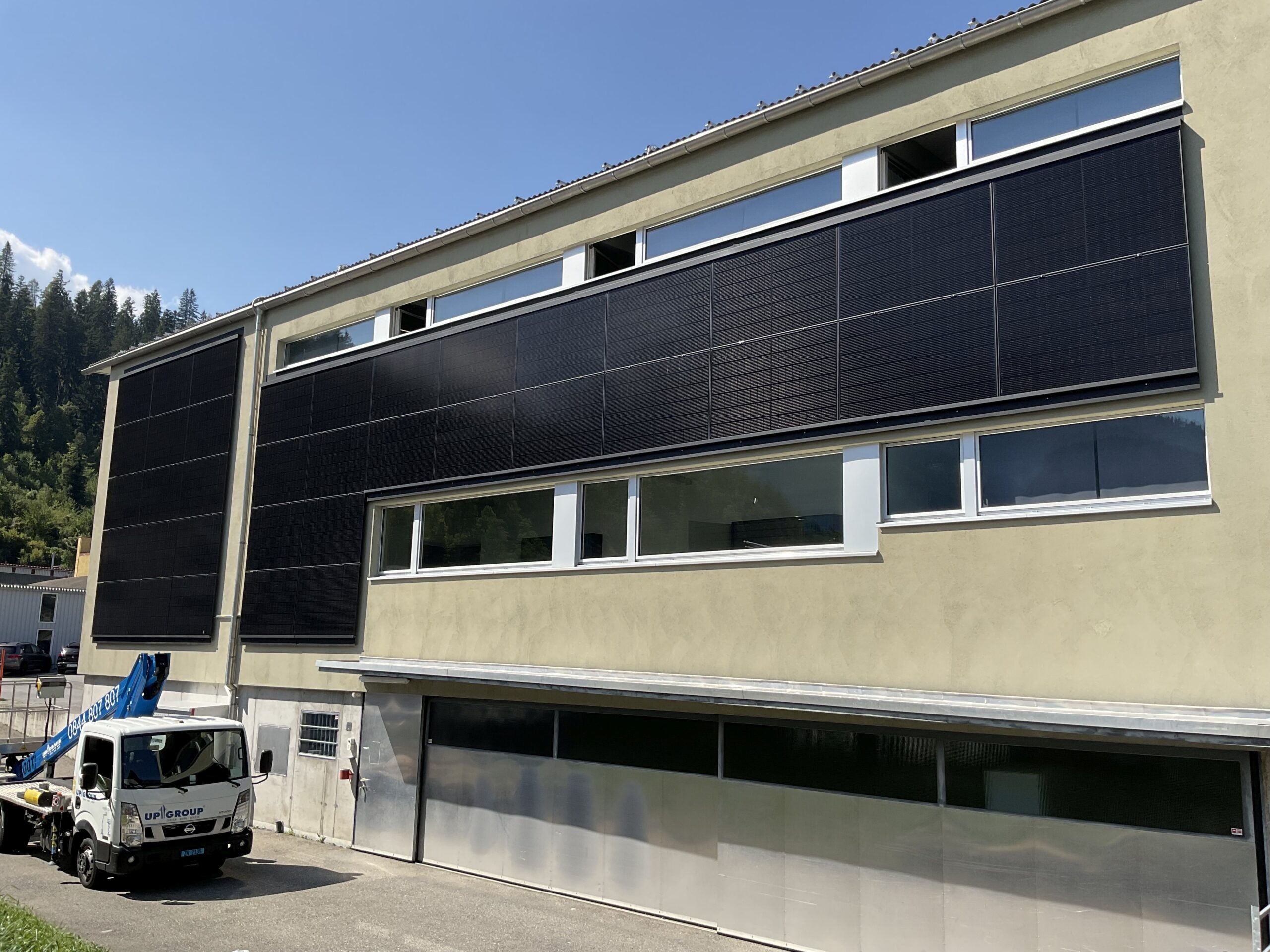 Die HMQ AG in Thusis hat sich für eine PV-Anlage von Lippuner entschieden. Als eine Vorreiterin für die Erzeugung von erneuerbarer Energie gab sich die HMQ AG jedoch nicht mit der einfachen Nutzung des Daches zufrieden. Denn auch die Südfassade sollte mit PV-Modulen bestückt, und so ein möglichst optimaler Winterertrag realisiert werden. Von der Beratung bis zur Detailplanung der gesamten Anlage, von der Baustelleneinrichtung bis zur Ausführung des PV-Systems wurde alles durch das Team New