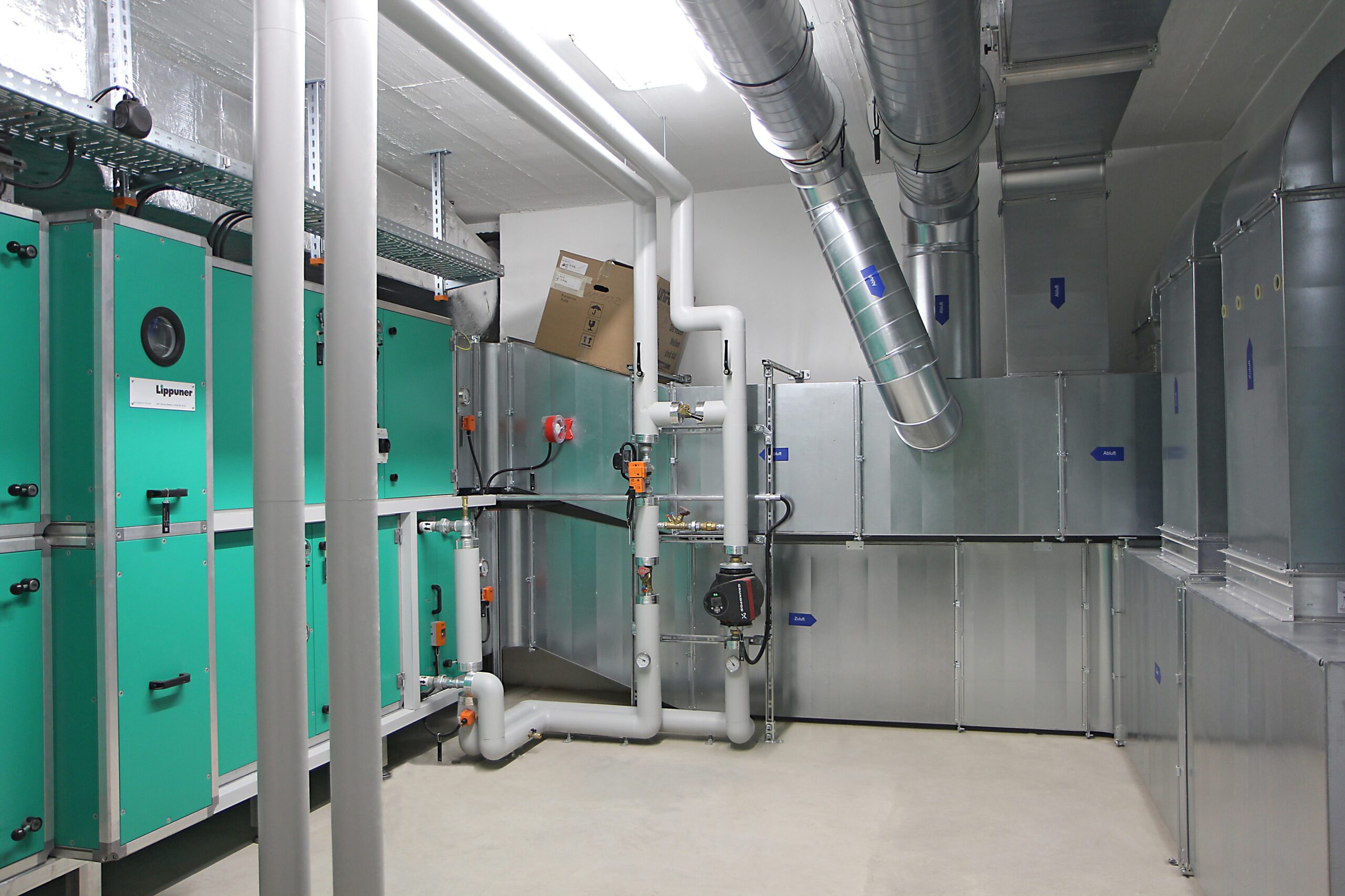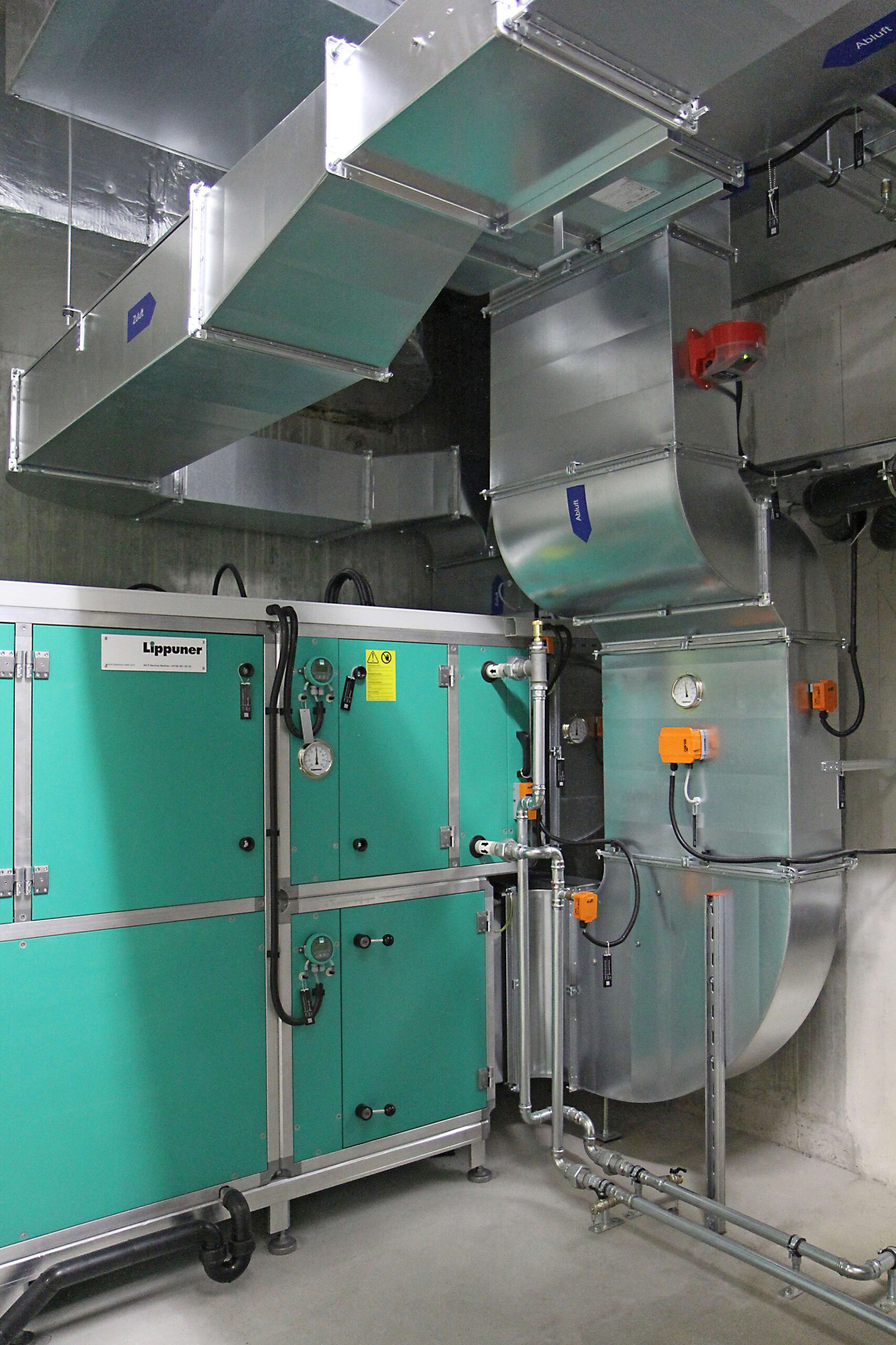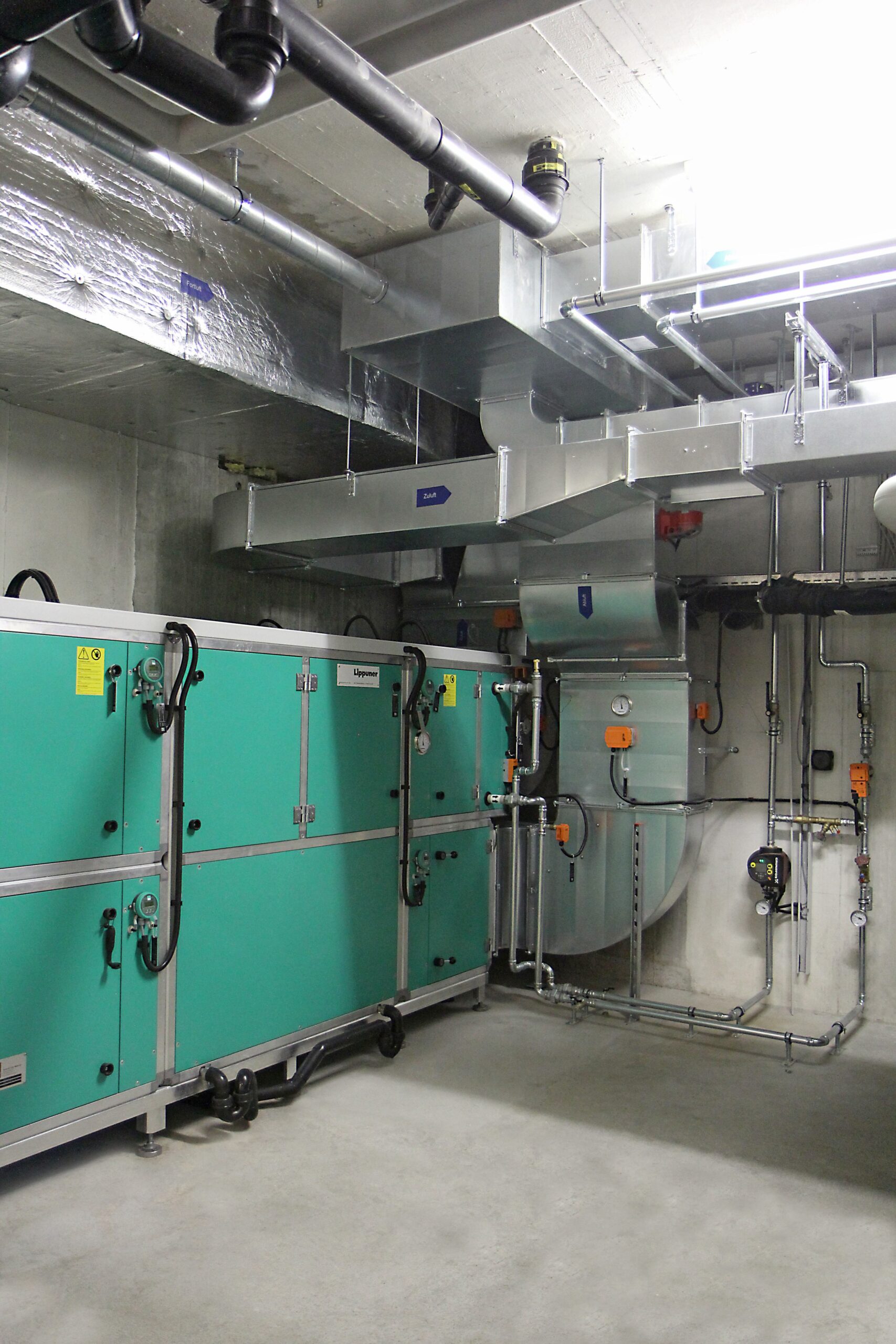 Lippuner sanierte die zwei Lüftungsanlagen der Turnhalle, inkl. Kompletter Kanalverteilung in der Hallendecke, sowie die Lüftungsanlage Garderoben im Untergeschoss. Ebenfalls wurde die gesamte Gebäudeautomation der beiden Anlagen ersetzt.